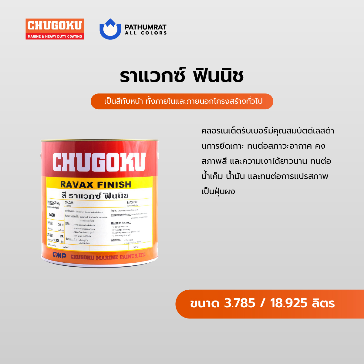 Home / Shop / สีชูโกกุ / ราแวกซ์ ฟินนิช – RAVAX FINISH