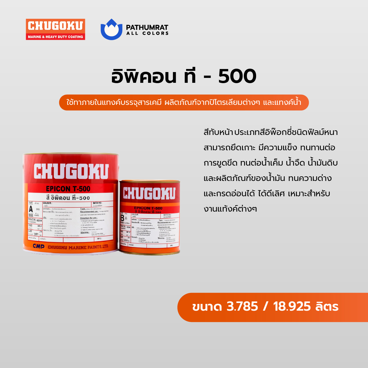 สีชูโกกุ สีทาเรือ สีอุตสาหกรรม สีทนความร้อน สีกันเพรียง สีชูโกกุ สีที่ทนต่อการกัดกร่อนสีน้ำทะเล Chugoku Marine Paints, Ltd. , Japan (มีประสบการณ์มากกว่า 100 ปี) ในการผลิตสีเคลือบทางทะเล, เคลือบหนัก, การเคลือบอุตสาหกรรมการเคลือบภาชนะและการเคลือบไม้ในประเทศไทยและขยายมาตรฐานและคุณภาพเดียวกันในประเทศญี่ปุ่นสู่ภูมิภาคนี้โดยใช้เทคโนโลยีระดับมืออาชีพของ