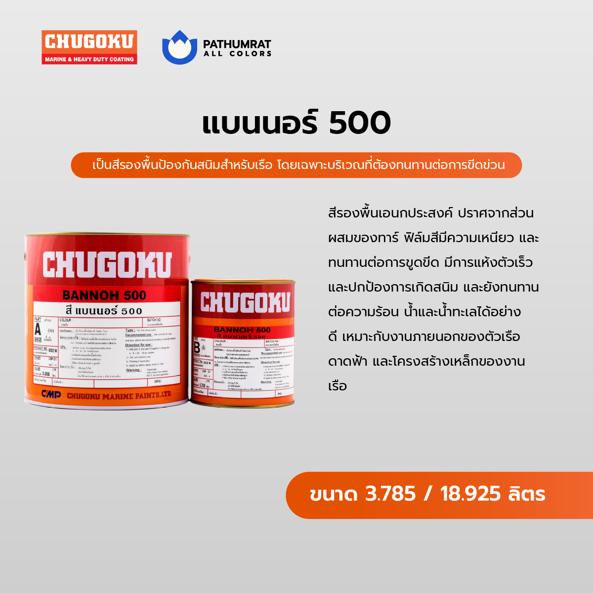 สีชูโกกุ สีทาเรือ สีอุตสาหกรรม สีทนความร้อน สีกันเพรียง สีชูโกกุ สีที่ทนต่อการกัดกร่อนสีน้ำทะเล Chugoku Marine Paints, Ltd. , Japan (มีประสบการณ์มากกว่า 100 ปี) ในการผลิตสีเคลือบทางทะเล, เคลือบหนัก, การเคลือบอุตสาหกรรมการเคลือบภาชนะและการเคลือบไม้ในประเทศไทยและขยายมาตรฐานและคุณภาพเดียวกันในประเทศญี่ปุ่นสู่ภูมิภาคนี้โดยใช้เทคโนโลยีระดับมืออาชีพของ